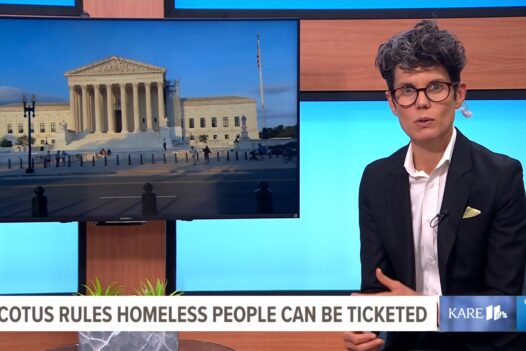 Mid-Minnesota Legal Aid Litigation Director Luke Grundman spoke to KARE11 about the Supreme Court’s ruling allowing cities to ban homeless people from sleeping outside. He emphasized that the decision does not solve homelessness—it exacerbates the issue by making it harder for unhoused individuals to secure housing.